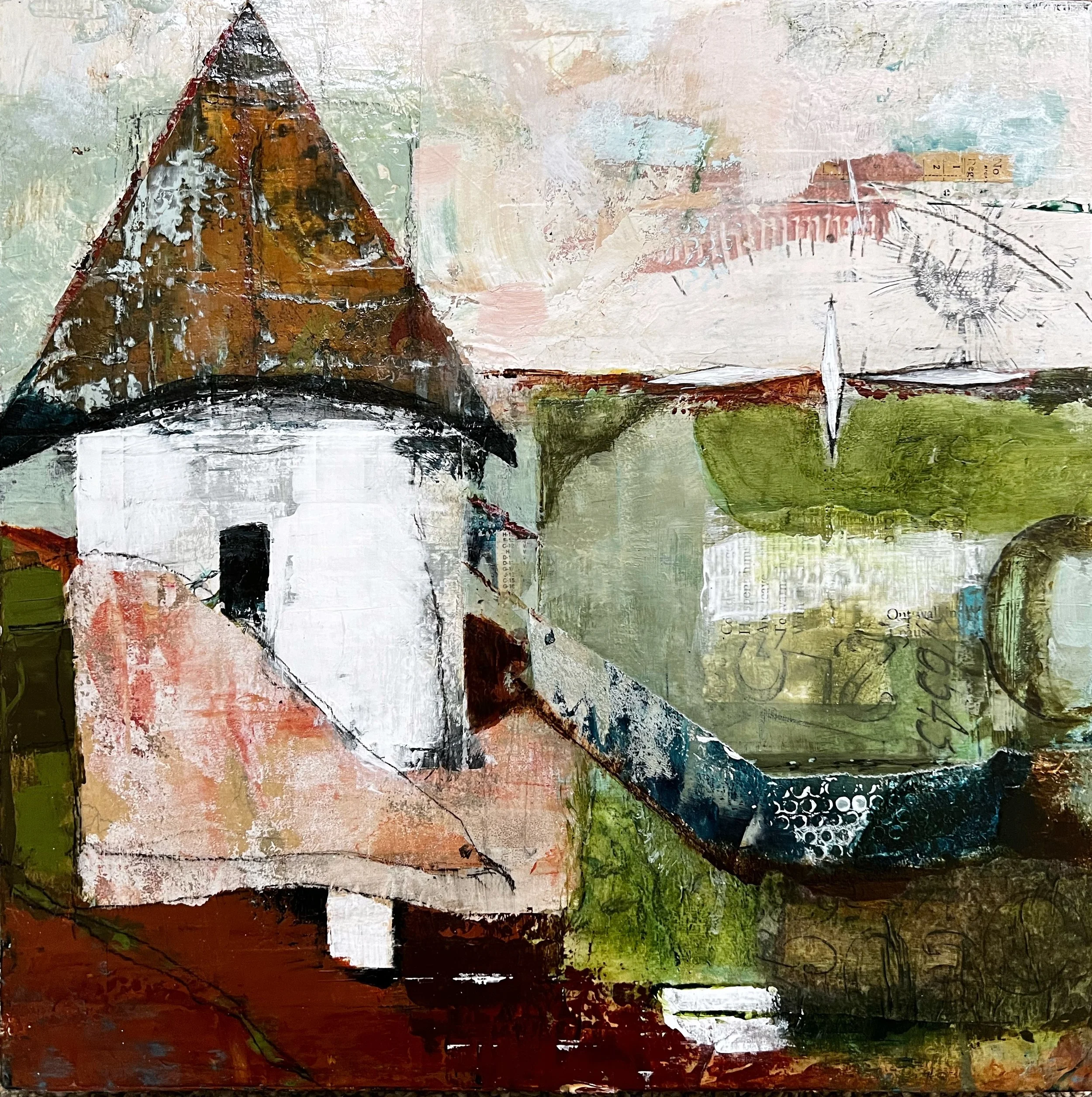 Since I could only work small, and not really paint yet, I used a lot of collage I had already made before my surgery. I could glue quite well even with my right arm in a sling.