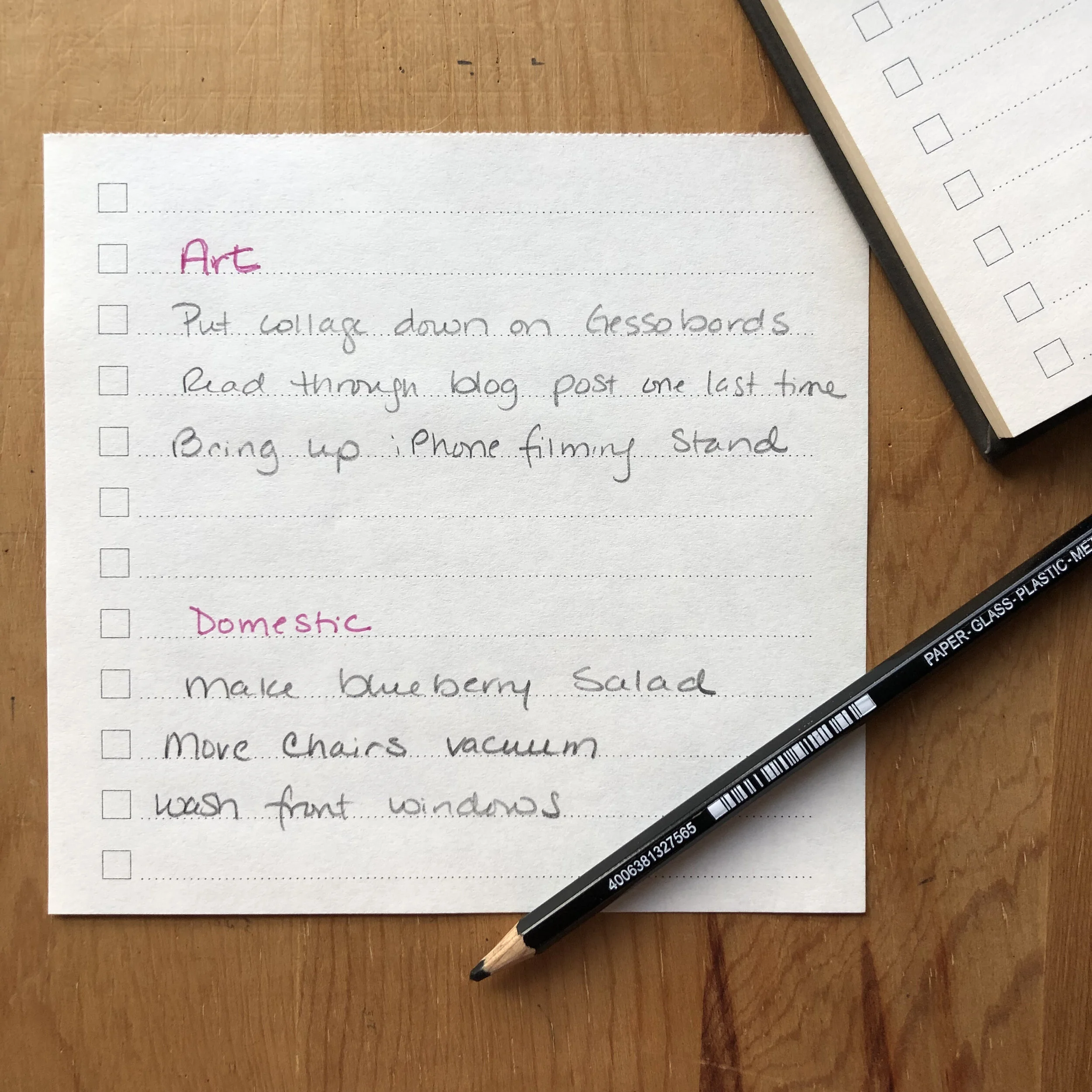 A to do list with three art related things, and three domestic things. Keeps life balanced.