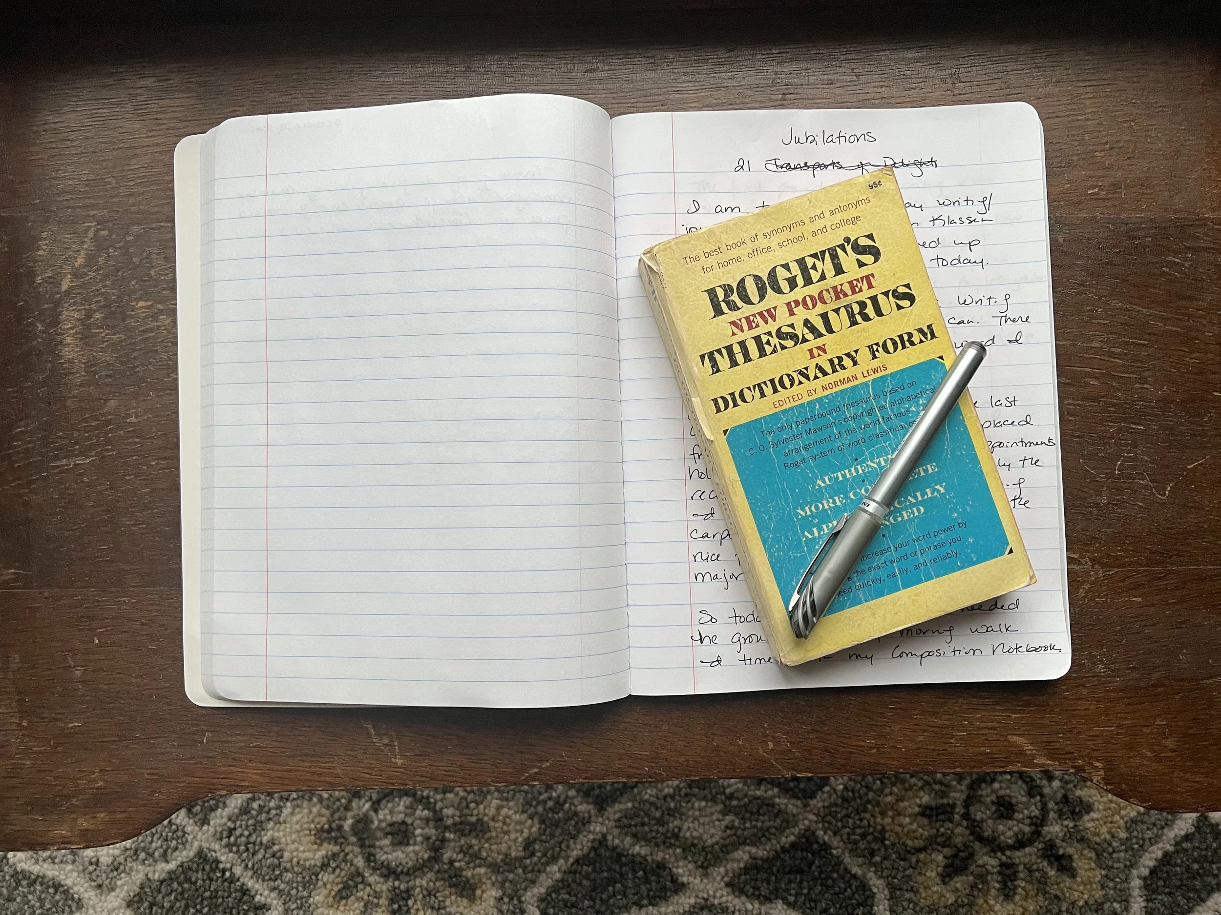 The first writing prompt was lists. 21 Amazing Things in 2021 or whatever you wanted to name it. You know I am going to rename it and make it me. :) I love words, especially old, underused, unique words, so I got out my Thesaurus. My daughter actually found this one when she was reorganizing the books for our Library wall. I quickly whisked it away to my Studio.